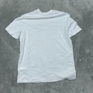 Soft and lightweight white crewneck T-shirt made from 100% cotton. Medium size fit, made in India, durable and breathable. Machine washable.