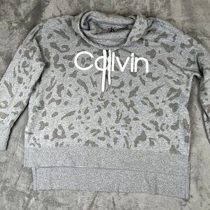 Up for sale is a - Calvin Klein Cowl Neck Sweater Gray Leopard Size Large Legging Sweater