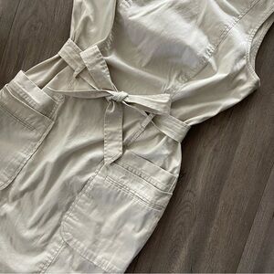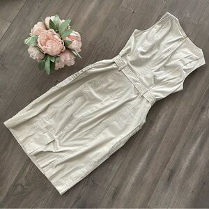 Calvin Klein Cream Khaki Utility Belted Midi Sheath Dress