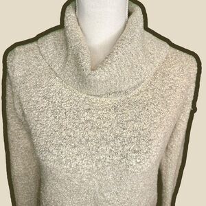 Calvin Klein Cream / Tan Fuzzy Marled Foldover Turtleneck Sweater Size Small