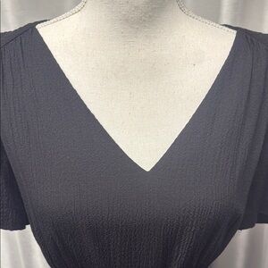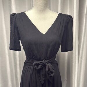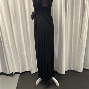 This elegant black dress is perfect for any occasion. Its classic design and flattering fit make it a must-have in your wardrobe. Front slit, tie waist, back zipper. Easy care fabric. Travels well! Only worn 3 times.