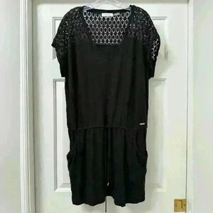 Calvin Klein Crochet Beach Coverup Casual Dress Black Drawstring 2 Pockets Sz XL