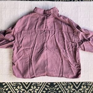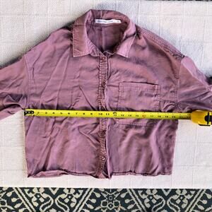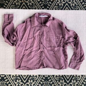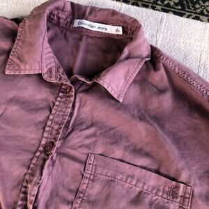 Calvin Klein Crop Button Up Collared Shirt Women Medium Purple Minimalist Eco