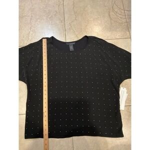 Calvin Klein Crop Top Women's S Black Short Sleeve Polka Dot Round Neck Pullover