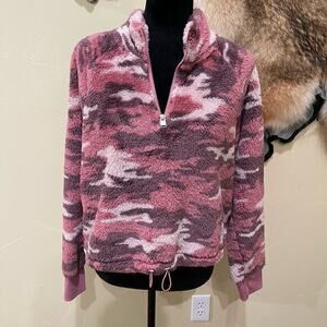 Calvin Klein Cropped Camo Sherpa Pullover 1/4 Zip
