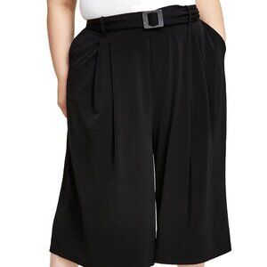 Calvin Klein Cropped Pants Women's Plus Size 1X Black Belted Wide Leg Dressy
