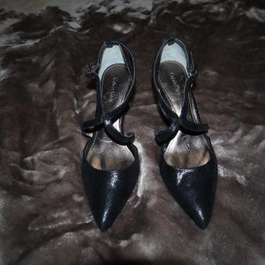 Calvin Klein Cross-Ankle Black Pumps, Size 7.5, Great Condition