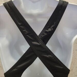 Scoop-neck; crossover back straps