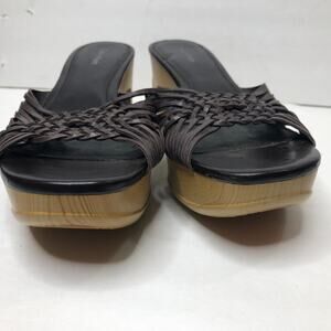 Calvin Klein Cut Out Wedge Woven Leather Slide Sandal Brown 8