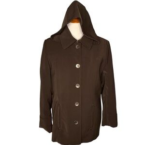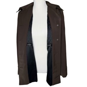 Calvin Klein Dark Brown Insulated Button Up Hooded Trench Car Coat Size Medium P