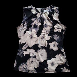 Calvin Klein Dark Floral Pleated Top Sleeveless Blouse Great for Under Suit