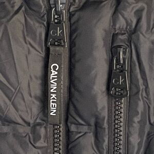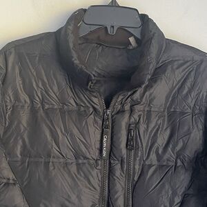 Calvin Klein Down Puffer Coat Size M Black Packable Full Zip Jacket Zip Pockets