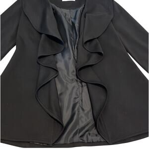 Calvin Klein Draped Ruffle Open Front Blazer Jacket Ponte Fabric Black Size 6