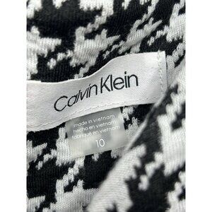 Calvin Klein Dress 10 Black A Line Sheath Midi Houndstooth Sleeveless Career NEW