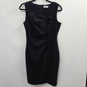 Calvin Klein Dress Womens Size 10 Black Sleeveless Ruched Sheath Stretch Formal