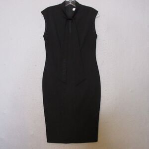 Calvin Klein Dress Women 4 Black Sheath Tie Neck Spell Out Career Office Church