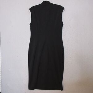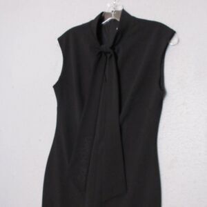 Calvin Klein Dress 4 Black Sheath Tie Neck Spell Out Career Office Church