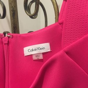 Pink Calvin Klein dress with capped sleeves. Never worn. Scuba material with zipper on the back, so has a nice stretch to flatter your figure. Hits at the knee on 5’6 individual. Perfect for your summer event!