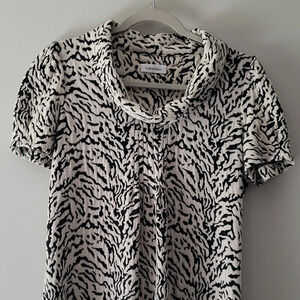 Calvin Klein Dress 8 Black Cream Abstract Animal Print Zebra Office Career Work