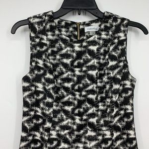 Calvin Klein Dress Womens 8 Petite Black White Printed Sheath Sleeveless Stretch. Great pre-owned condition. Back zipper.
