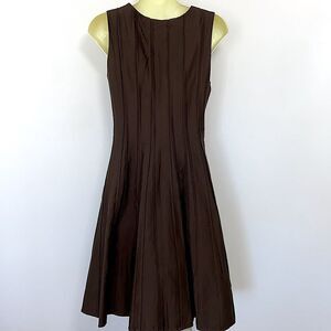 BY CALVIN KLEIN HERE IS A BEAUTIFUL COPPER PANELED COCKTAIL DRESS THAT IS TIMELESS ELEGANCE.WONDERFUL FOR PARTIES ,FULLY LINED, THIS GORGEOUS CALVIN IS A SOFT COPPER PANELED FROM THE SHOULDER TO THE HEM. SLIGHT SCOOP NECK. SIDE ZIP. FIT AND FLARE STYLE BUT THE WAIST IS LOOSE FOR COMFORT. SZ 4, WONDERFUL CONDITION~PLEASE NOTE THE MEASUREMENTS SHOULDER TO SHOULDER=12” BUST=34-36” WAIST=26-27” HIPS=34-36” LENGTH=38”
