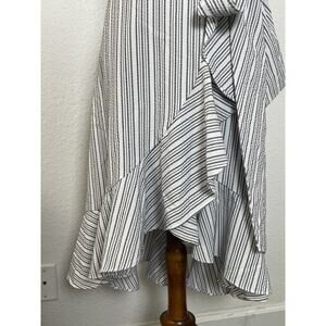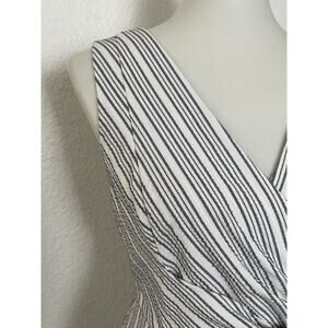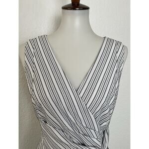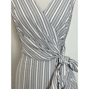 Calvin Klein Dress Midi Belted Striped Ruffled V Neck Seersucker