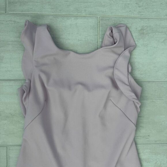Calvin Klein Dress Midi Short Sleeve Ruffled Lilac Purple Round Neck Zip Bodycon