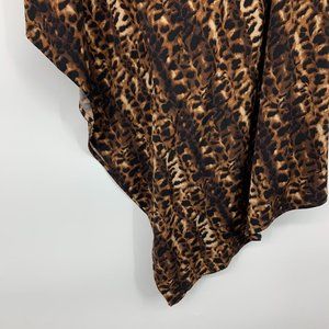 Calvin Klein Dress Womens Size 8 One Shoulder Leopard Print Mini Brown Black. Great pre-owned condition. Side zipper. Inside lining. Chest: 16" across top, 19" pit to pit.