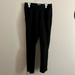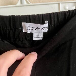 Calvin Klein black dress pants size 6. Pants have pockets, a zipper at the side of the waist and some elastic in the waist. In good used condition.