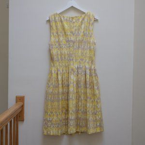 Yellow and gray patterned stretch, knee-length dress from Calvin Klein, size 14.