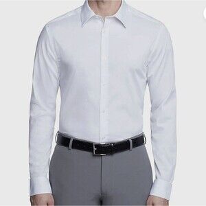Calvin Klein Dress Shirt Mens Size 17 36/37 XLT White Cotton Slim Fit Non-Iron