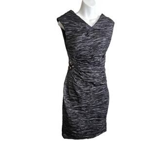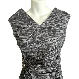 Calvin Klein Dress Size 4 Gunmetal Gray Ruched Embellished Sheath Cocktail Dress