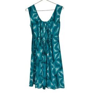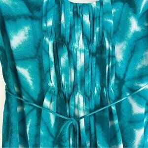 Calvin Klein Dress Sz 4 Pleated Bust Laguna Blue Green White Tie Dye Womens
