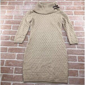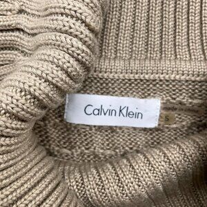 Calvin Klein Dress Women Small Light Brown Cowl Neck Buckle Acrylic Knit Sweater