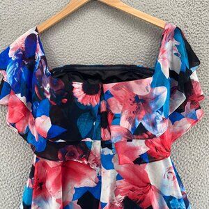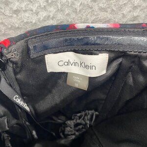 Calvin Klein Dress Womens 10 Blue Pink Floral Chiffon Sheath Strapless Ruffle