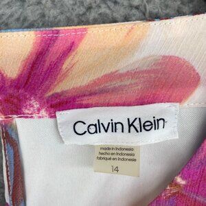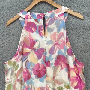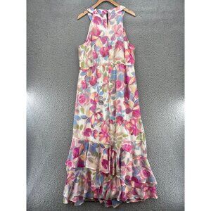 Calvin Klein Dress Womens 14 Pink Multi Floral Maxi Halter Blouson Ruffle Ruched