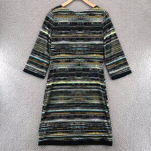 Calvin Klein Dress Womens 2 Black Multi Patterned Shift 3/4 Sleeve Stretch Mini