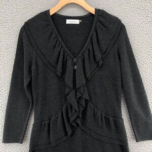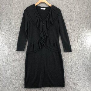 Calvin Klein Dress Womens 4 Gray Sweater Knit Ruffled Bodice Mini 3/4 Sleeves