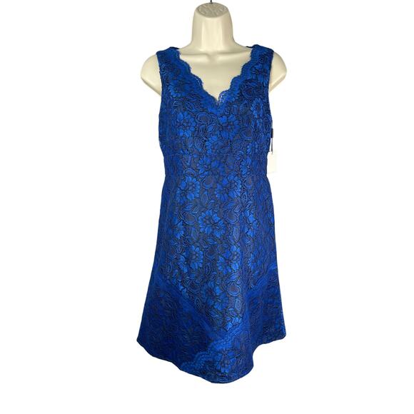 Calvin Klein Dress Womens 4P Celestial Blue Lace Scalloped Neck Sheath Cocktail