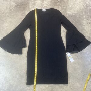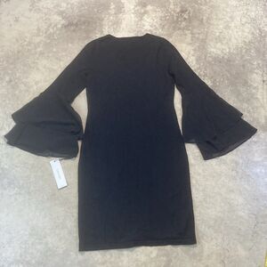 Calvin Klein Dress Womens Medium Black V Neck Bell Sleeve Flowy Classic