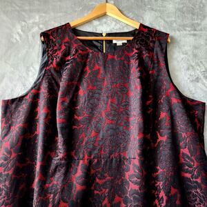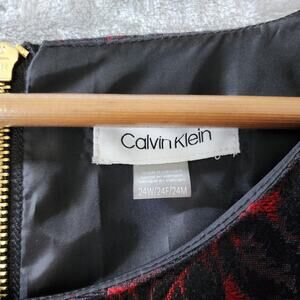 Calvin Klein Dress Womens Size 24W Black Red Brocade Sheath Midnight Flower Rose