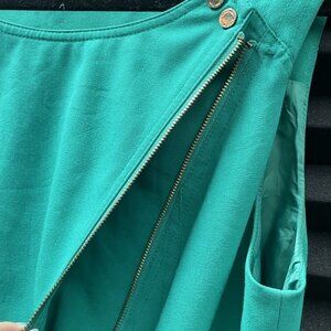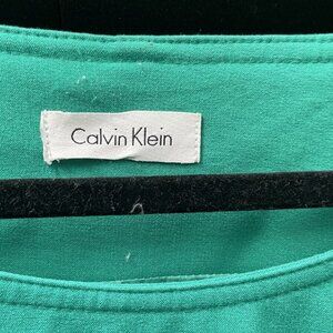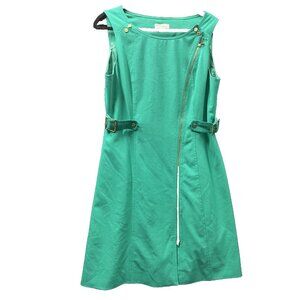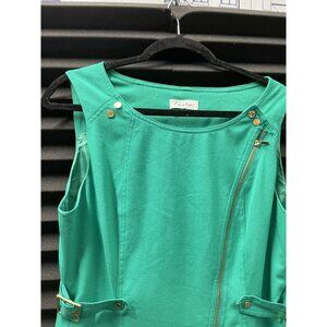 Calvin Klein Dress Women's Size Petite Midi Green Full Zip Adjustable Waist Snap