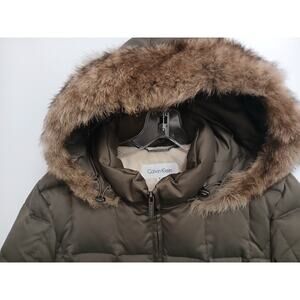 Calvin Klein Duck Down Parka Sz M Brown Puffer jacket Coat Removable Hood $250