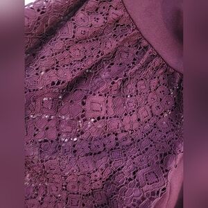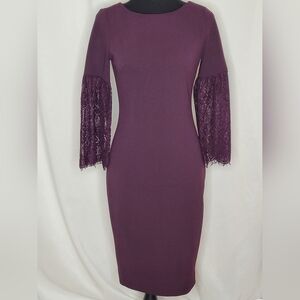 Calvin Klein Eggplant Boat Neck Lace Bell Sleeves Sheath Dress - Size 2