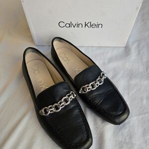 Calvin Klein Elanna Chain Link Black Loafer Leather Slides