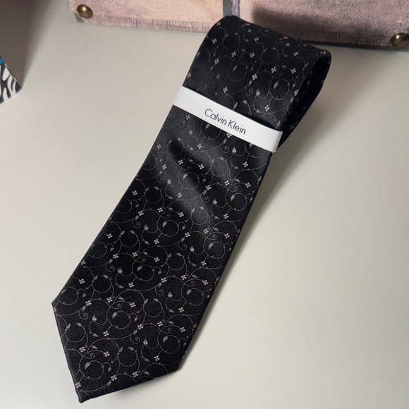 Sophisticated black tie with subtle floral design. Ideal for formal events. Enhance your attire with Calvin Klein's style.