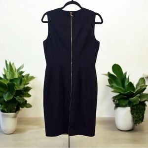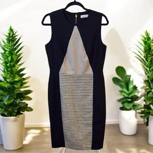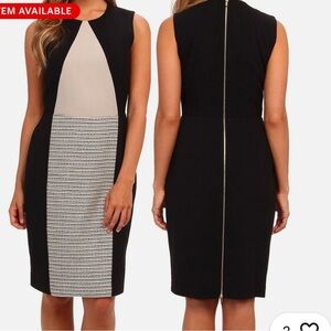 This elegant dress features a sophisticated black and cream design, perfect for any occasion. The sleek silhouette offers a timeless look.