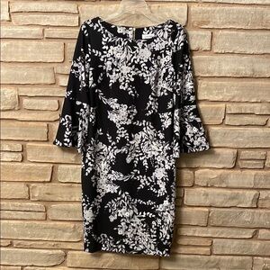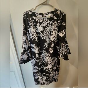 Calvin Klein Elegant Black and White Floral Dress Size 12