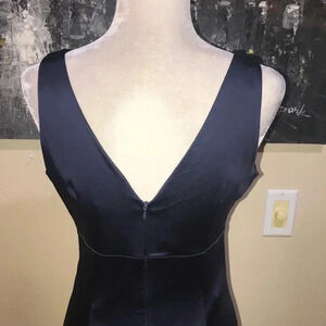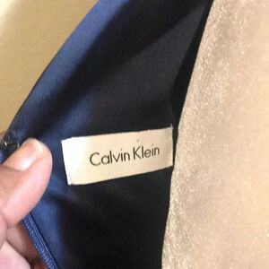 Calvin Klein Elegant Blue Satiny Deep V-Neckline Sleeveless Dress