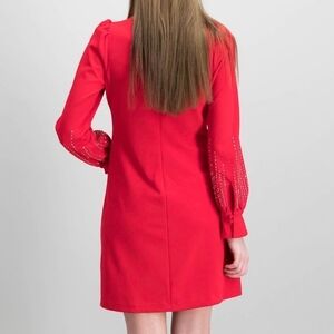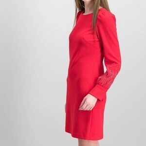 Calvin Klein Embellished puff sleeve red dress sz 12 new with tags